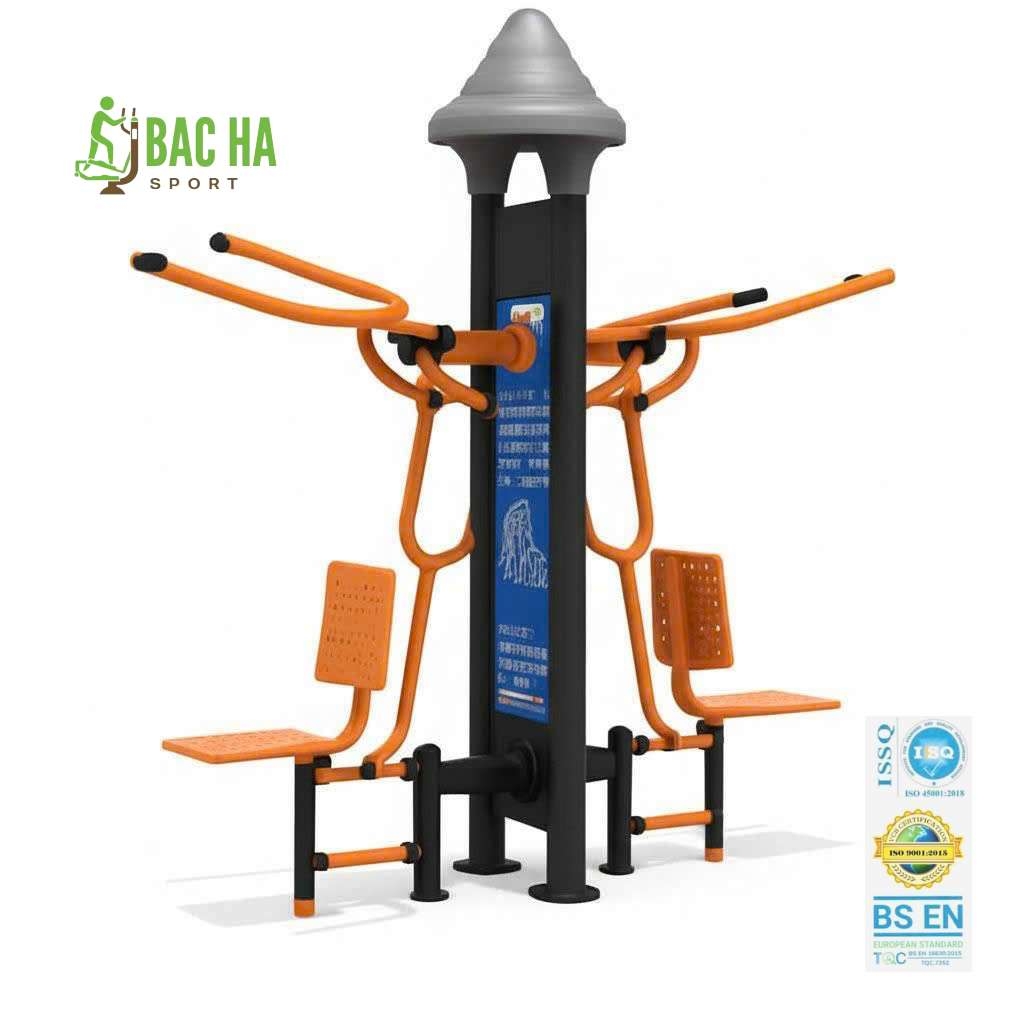 Máy tập thể dục ngoài trời công viên Đẩy Tay 2 Trụ là mẫu thiết bị vận động mới nhất do Bắc Hà Sport nghiên cứu, sản xuất và cung cấp tại Hà Nội, Việt Nam. Sản phẩm được thiết kế chuyên dụng cho các khu vực công cộng như công viên, khu đô thị, khu dân cư, trường học và không gian sinh hoạt cộng đồng.
